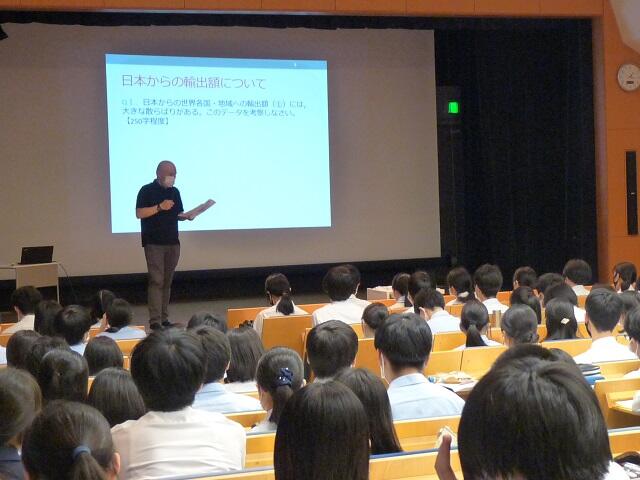 小森谷先生は、国際経済学科に所属されており、事前課題として貿易に関する問を6題出され、それを解いて講義に臨む形式であり、一般的な貿易論ではなく、データ処理のコツを交えながら、どのように考察していけばよいのかといった大学入学後をにらんだ構成をとられていました。