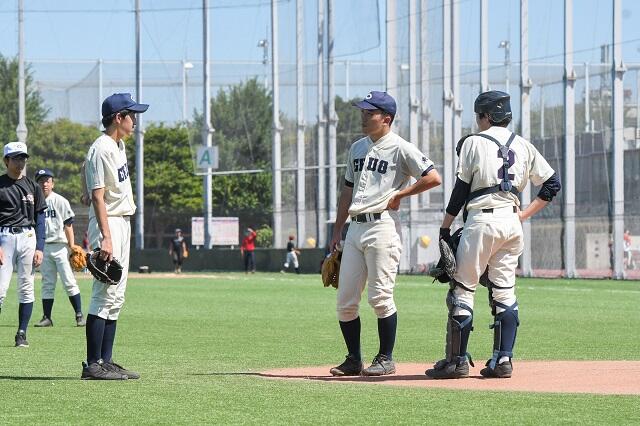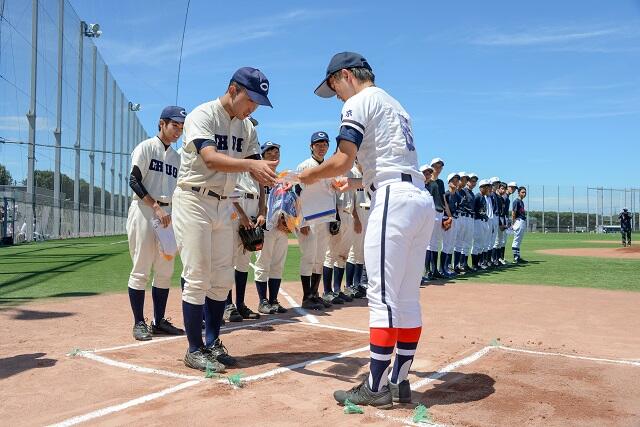 緊急事態宣言が発動され、学校生活自体が停止した中でも部員たちはオンラインでミーティングを行うなど、来るべき本番に備えチームとしての活動を続けてきました。しかし、コロナウイルスの感染拡大を受け春大会、夏季大会が中止となり、夏季大会の代替試合も期末考査と重なったことで参加できませんでした。そんな中、三年生の高校野球を締め括る場として白球会が中心となり引退試合が行われました。