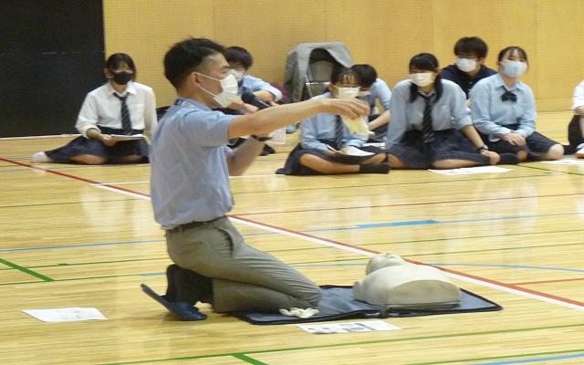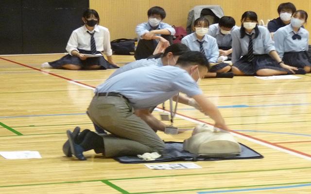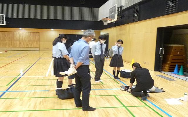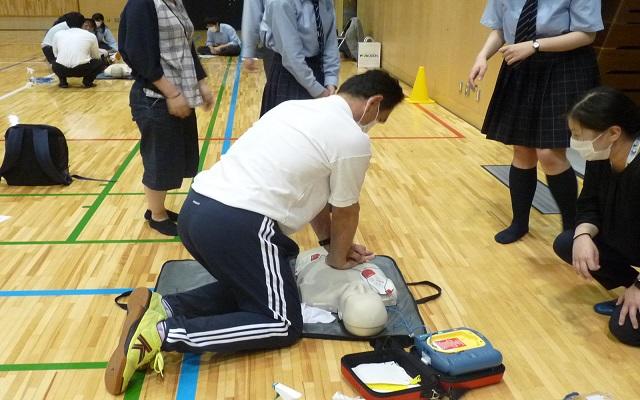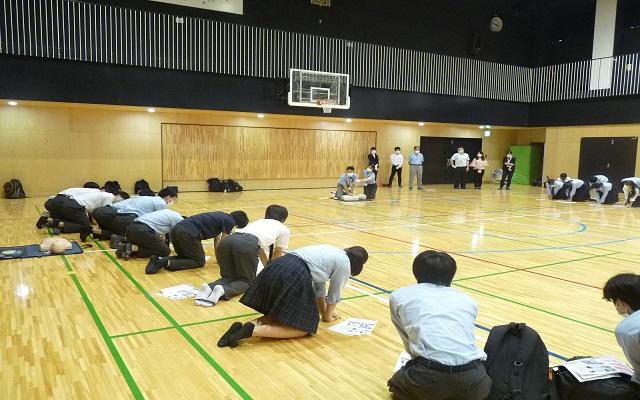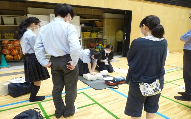 綜合警備保障株式会社から講師をお招きし、AEDを使用した心肺蘇生法の講習会を行いました。各部活からの代表者2~3名と教職員が参加しました。課外活動や日常生活の緊急時に備え、AEDの正しい使用法を実習しました。また講習会後には、看護師より、熱中症の予防法・対処法について講義を行いました。