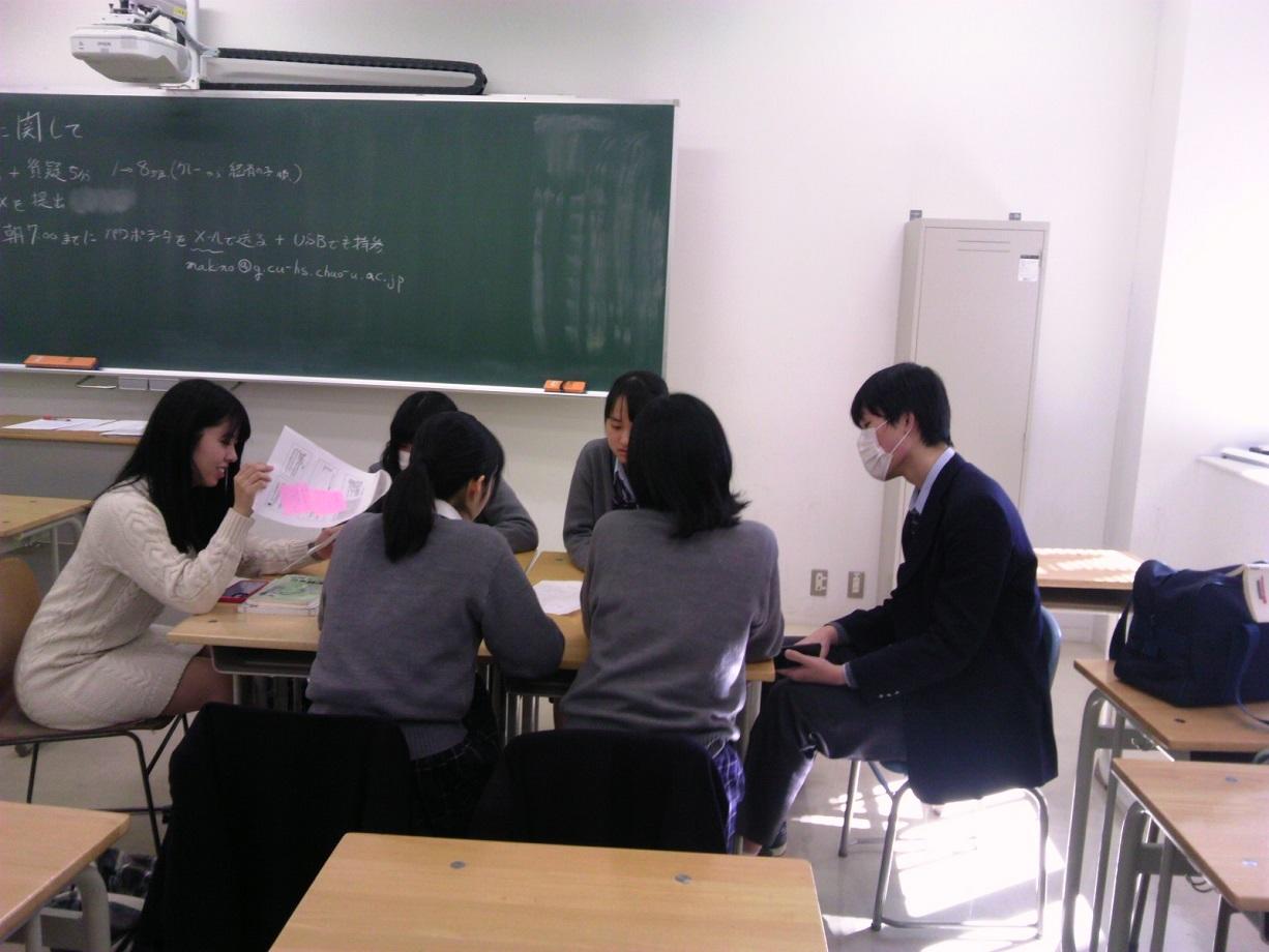 今年も、経済学部進学予定者に対し参加を義務付けられているプレゼンテーション大会に向けて、先輩たちが忙しい中来校し、ファシリテーターとしてアドバイスしてくれています。『高校生からの経済入門』の中から割り振られた章の内容をまとめ、自分たちの意見を発表するというものであり、高校生が作成したレポートを見て、さらに磨きをかけるように促してくれています。その助言を活かして、大会で評価されるように頑張ってくれるものと期待しています。