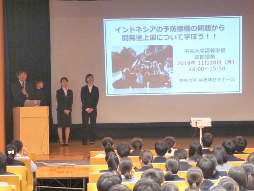 今年度も、中央大学経済学部の林光洋ゼミナールの皆さんが来校して、インドネシアに訪問した際の活動の紹介、並びにその国の抱える問題をワークショップで考える特別活動を行いました。