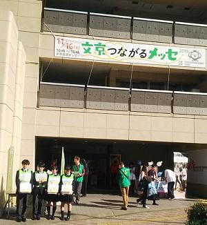 11月16日(土)に生徒会の生徒4名が募金活動に参加しました。この活動は文京区社会福祉協議会の方の呼びかけで、文京区社会福祉協議会の1階で行われました。この日は「文京つながるメッセ」が開かれており、多くの方に募金していただきました。また、生徒会費から30万円を文京区社会福祉協議会を通して、台風19号の義援金として送りました。