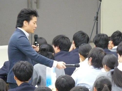 松岡先生は常にアグレッシブに語られ、演壇の上にほとんどとどまることなしに、会場を歩き回られ、時にユーモアを交え、質問を生徒に投げかけておられました。そうした姿に生徒は引き込まれており、講演時間の70分が短く感じられました。