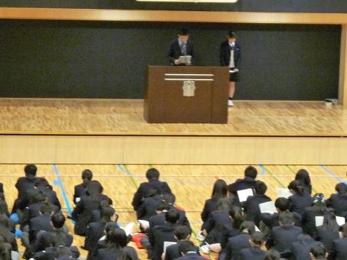 2号館高校アリーナにて、2019年度前期生徒総会を行いました。2・3年生があたたかく新入生を迎える対面式から始まり、生徒会の2018年度決算報告や2019年度予算案の報告等を行いました。【生徒総会プログラム】0.対面式1.開会宣言2.議長選出3.生徒会長挨拶4.文化祭実行委員長の話5.新入生歓迎会実行委員長の話6.2018年度決算報告7.2019年度予算案報告8.質疑応答9.生徒会執行部からの報告10.閉会宣言