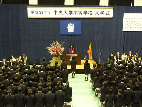 中央大学後楽園キャンパス2号館高校体育館にて、2019年度入学式を挙行しました。保護者の皆様・ご来賓をはじめとする関係者の方々に見守られながら、新入生177名(男子76名、女子101名)が入学しました。<式次第>開式の辞学事報告新入生呼名学校長式辞来賓祝辞来賓紹介新入生誓いの言葉歓迎の言葉教職員紹介校歌斉唱閉式の辞