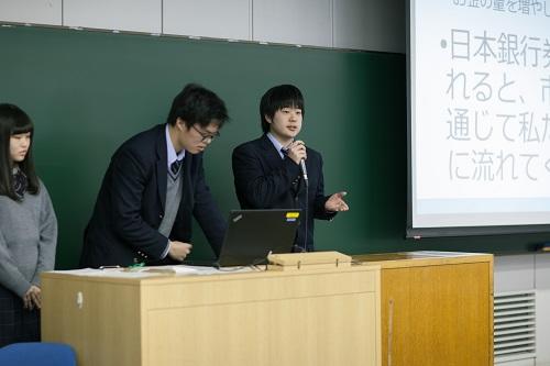 中央大学経済学部では昨年から、附属4校の経済学部進学予定者を対象に入学前にプレゼンテーション大会を実施しています。これは、高大接続教育の一環として考えられたもので、高校での知識を活かすととともに、大学での学びを先取りし、4月からの生活をスムーズに始めることを一つの目的としています。