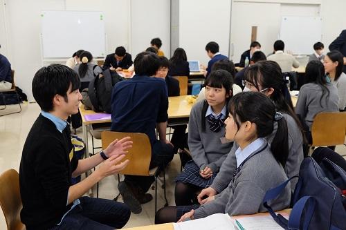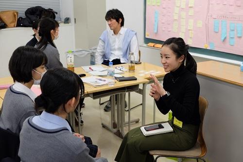 「志」セッションでは、人生の先輩である社会人ファシリテーターが、「高校時代に考えていたこと」「今の仕事に就こうとしたきっかけ」「仕事のおもしろさ、やりがい」などを生徒の皆さんに語って、質問を受けたりしながら、生徒の皆さんが自分の「志」を考えるヒントを得ていました。また、11月からチーム活動を進めてきたチームメンバーの生徒同士がお互い「見習いたいところ」をメッセージカードに記載して、発表し合いました。チームの仲間から褒められて、照れながらも非常に嬉しい表情をしていたのが印象的でした。