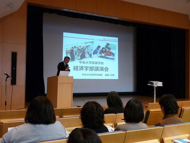 1年生の保護者会において、中央大学経済学部長の講演を行いました