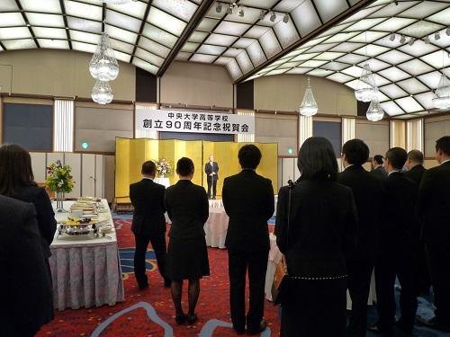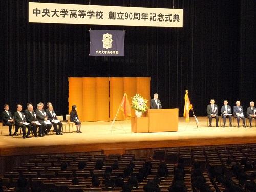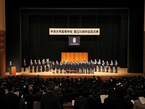 中央大学高等学校は、1928年(昭和3年)の創立から90周年を迎えました。それを記念して、11月16日(金)午前11時、文京シビック大ホールにおいて式典を挙行致しました。また同日13時半より東京ガーデンパレスホテルにて祝賀会を挙行いたしました。