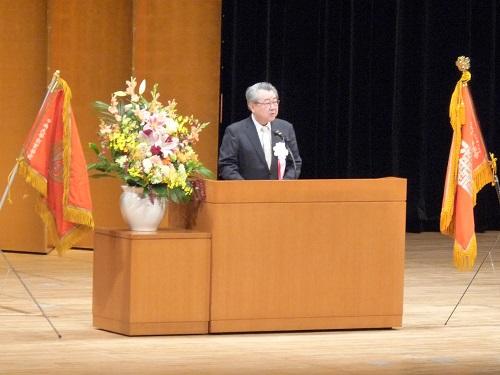 式典は、開式の辞の後、合唱部とともに全校生徒全員で校歌(本校の校歌は中央大学と同一)を斉唱しました。今井校長の式辞の後、成澤廣修文京区長、近藤彰郎東京私立中学高等学校協会会長のお二方よりご祝辞を賜り、中央大学からは大村雅彦理事長、酒井正三郎総長、福原紀彦学長の各先生からご祝辞を頂戴しました。