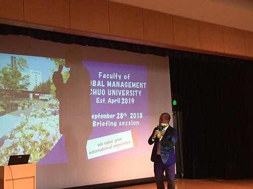 9月28日(金)、2年生を対象に中央大学国際経営学部の学部説明会を行いました。この学部は2019年4月より開設予定となっておます。カリキュラムの中に短期留学やインターンシップなどもあり、学生時代から国際ビジネスの息づかいを肌で感じることのできる学部です。国際経営学部の開設準備室事務室のスタッフより、新しい学部のコンセプトなどについて説明いただきました。◇中央大学国際経営学部 国際経営学科 2019年4月 多摩キャンパスに開設予定