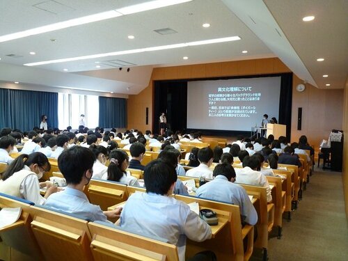 10月9日(土)本校小ホールにおきまして、中央大学法学部政治学科4年福士佳依さんと中央大学国際経営学部3年ロジンインさんを迎えて、総合的な探究の時間「留学のすゝめ」を開催しました。