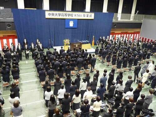 新型コロナウイルス感染症対策として規模縮小しての開催となりましたが、晴天に恵まれた3月1日(火)、中央大学高等学校2号館アリーナにて、2021年度(第74回)卒業式を挙行しました。卒業生のみなさんのこれからのご活躍を祈っています