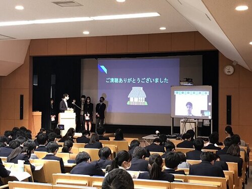 最後には、本講座の企業・機関の幹事をされている吹野様より会全体に対する講評を頂戴し、2時間近い発表は終了となりました。参加した生徒たちは、達成感を味わうとともに、視聴した生徒も同級生や先輩の発表に刺戟を受けたようです。