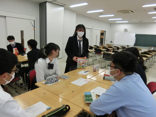 4/28(木)に新入生歓迎会を行いました。キャッチコピーは「書に交われば仲深まる」です!!新一年生との仲を深めるため、非図書委員も含め自由参加型で、お勧めの本を紹介しました。当日は情報の授業課題提出があったため、一年生の参加者はあまりいませんでしたが、企画自体は予想以上に盛り上がり、参加者の仲は深まったと思います。参加賞の消しゴムをもらって解散しました。筆者はワニの消しゴムをもらいました。