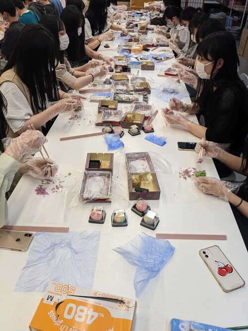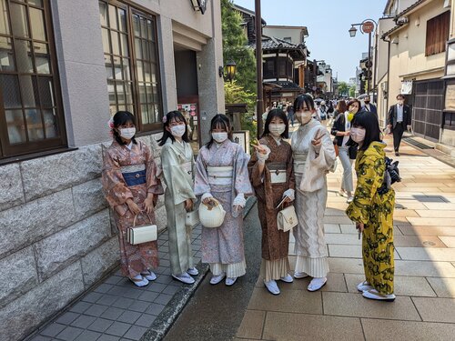 本日は金沢市内終日自主研修になります。今日も暑いくらいに晴れ予定通りの行程を行いました。朝9時にホテルを出発した後、各班で「和菓子作り体験」「加賀八幡起き上がり絵付け体験」「金箔塗り体験」「匂い袋製作体験」「九谷焼絵付け体験」「加賀毛針細工体験」「手すき和紙彩色体験」「三味線弾き体験」の8つの中から選んだ体験学習を行いました。1時間程度の体験でしたが自らの手を動かすことで金沢の文化を学べるよい機会になりました。体験後は班毎に自由に金沢市内散策です。海鮮丼を食べるために並んでいる班もあれば観光を優先するために早く食べられる場所を探す班など様々な形で自主研修を楽しんでおりました。東山地区は茶屋町ということもあり浴衣をレンタルして1日過ごしている生徒もちらほら見かけました。最後は金沢駅周辺でお土産を買い、ホテルに戻るときは両手に買い物袋を抱えて帰ってきました。