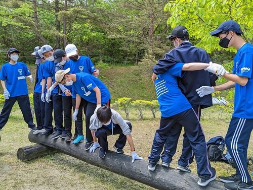 写真は、チ−ムごとに異なるアクティビティです。違う種目であっても全体として同じような学びとなるよう工夫されており、これからの学校生活やさらにその先のことにも繫がるように考えられています。