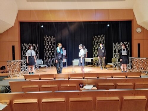 演劇部は、現在9月の後楽祭公演に向けて稽古中です。本公演をもって引退する3年生にとっては最後の舞台ということもあり、これまで以上に熱の入った様子で稽古に打ち込んでいます。それに触発されてか、1・2年生も負けじと顧問の指導に応えています。