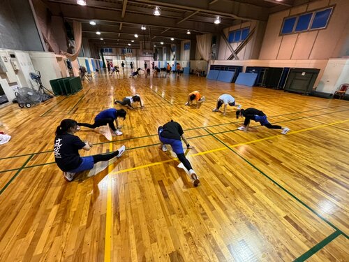 初日はアップの後、1時間ほど練習をしているとあいにくの雨・・・。夜は体育館でのトレーニング&ストレッチとなりました。