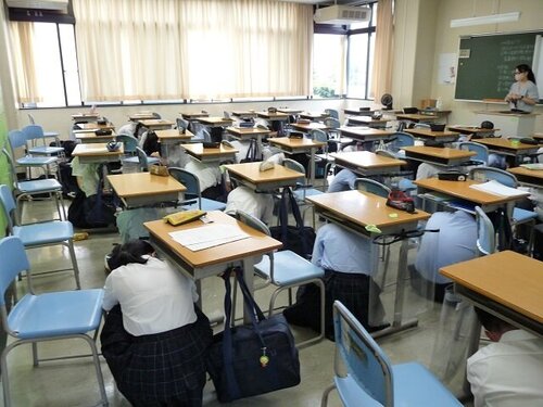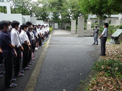 現在、後楽園キャンパス中庭が工事中のため避難場所が多目的コートではなく、隣りの戦没者霊園をお借りしました。