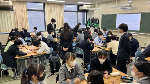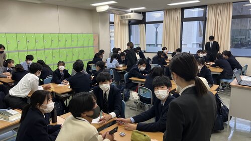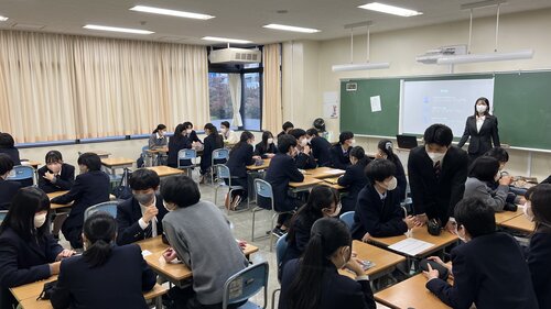 後半は、ホームルーム教室で「フィリピンのスラム街の子どもたちが学校に行くために、フィリピン政府と日本政府、企業ができることを考えよう!」という課題について議論し、議論した内容をクラスごとにまとめることで、”主体に応じたできること”を考え・学ぶ機会となりました。