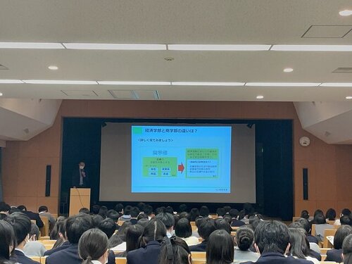 秋の学部ガイダンスシリーズの3回目は商学部です。商学部事務室の星野様より、商学部と経済学部の違いなど具体的な例を挙げられながら大変分かりやすく説明頂きました。進路決定の折にはエントリーシートの提出もあることから、商学部での学びをしっかりと認識して充実した大学生活を送ってほしいというエールを頂戴しました。