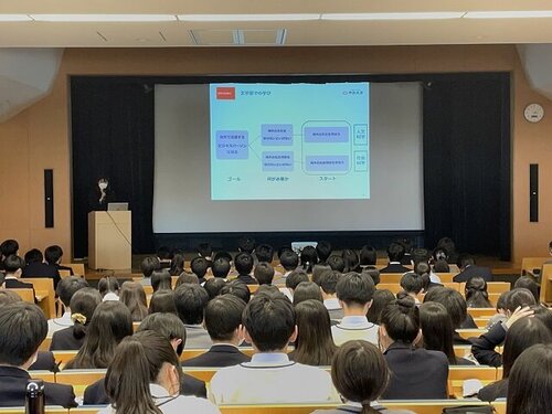 今年最後の学部説明会は文学部となりました。これで残す学部は3学部となります。 生徒も会を重ねるごとに、学部説明の聞き方も上手くなり、自分に「ひっかかった」点を メモし、感想を書いています。 文学部は13専攻プラス1プログラムの大きな枠組みを持つ学部であり、本日は時間の関係で 各専攻・プログラムの詳細な説明はありませんでしたが、齋藤様のわかりやすく簡潔な 解説から文学部への関心を深めてくれることと思います。