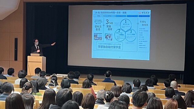 1時間のお話の全てにおいて「学生を育てる」という熱い思いが背景に見えるものであり、 保護者の方も聞き入っておられました。