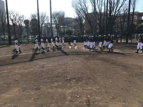 外部グランドにて白球会との合同練習です!引退した高3生中心の先輩方を相手に試合形式の練習を行いました。人数の少ない我々にとっては貴重な時間です。冬の練習成果が実感できる結果を出せました。先輩方に感謝です!