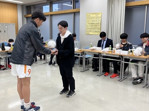 14時から2時間程度大学アリーナにて、3年生対1,2年生で紅白戦を行ったあと、教室で会が行われました。