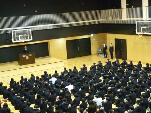 4月6日(木)中央大学後楽園キャンパス2号館高校体育館で1学期始業式を行いました。始業式の次第は以下の通りです。また、4月から着任する教員の紹介を行ったほか、新学年の担当教員の紹介を行いました。