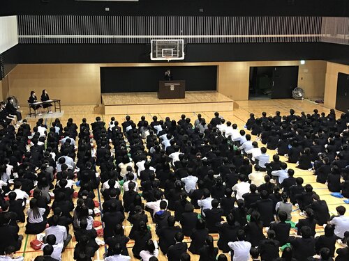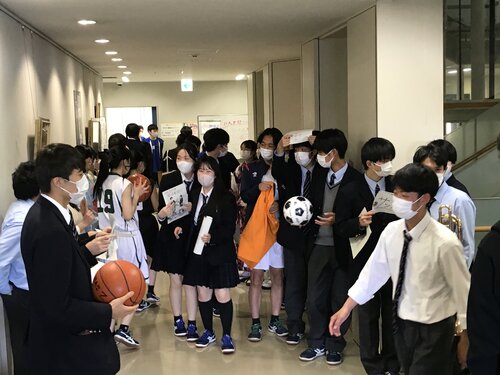 今年は3学年全員が高校アリーナに集まり、対面式で行うことが出来ました。