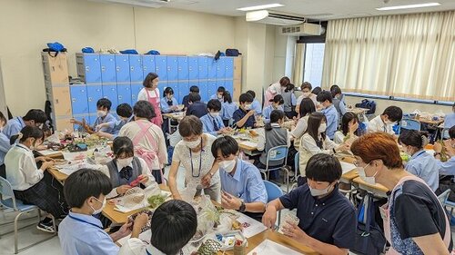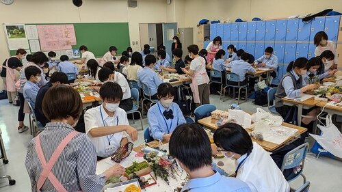 また、昼食をはさんだ後、ドライフラワーをアレンジして自分を表現する フラワーセラピー実習を行いました。その過程を通して、自分をみつめるとともに他者へのあたたかい眼差しを持つことを意識してくれれば嬉しく 思います。
