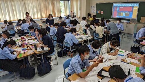 本日はA組でした。3・4限に点字学習として、点字の構成や打ち方を聞いた後、 点字を打ったしおりの作成を行いました。