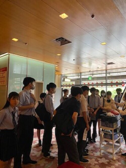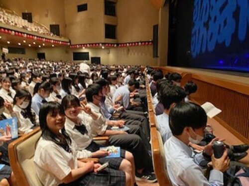 有名な大蛇退治の神話を描く、華麗で迫力満点の舞台を堪能しました。また、最初の『歌舞伎のみかた』では解説の中村虎之介さんと中村祥馬さんの楽しい掛け合いで歌舞伎の音響や物語について詳しく聞きました。客席インタビューコーナーでは本校の先生にもマイクが向けられ、大いに盛り上がりました。