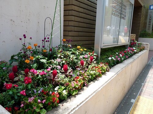 7月・夏を迎え、高校正面入口(8号館)にある花壇の花を入れ替えました。