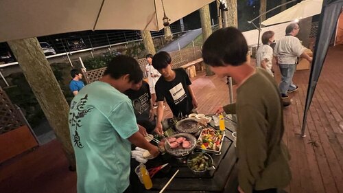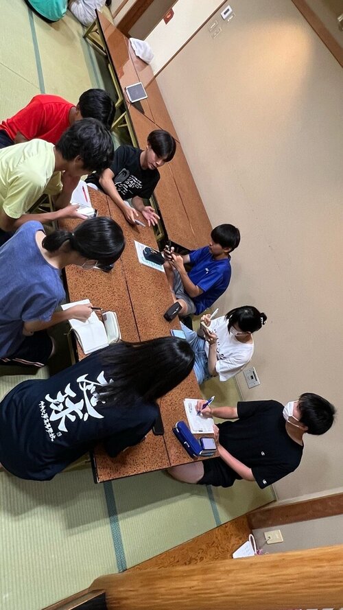 夜はチームミーティング、学年ミーティングをとおしてその日の振り返りを行い、翌朝の全体ミーティングでテニス・生活面の課題を共有し、改善していきました。