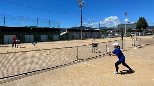 午前は基礎練習、午後は対人練習・個別課題練習を行い、テニスのレベルアップ!