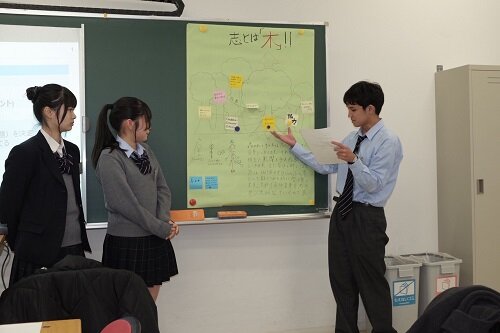 キャリア講座の実践編の2回目が12月16日に行われました。冒頭社会人リーダーの方から今日の大きな流れの説明があり、前回からの宿題を整理して全参加者を前にして自分たちが考える「志」とは何かを発表しました。その後、社会の課題を見つけるためにも教科書的なテーマにならないように高校生として「もやもや」していることは何だろうということから考えていきました。その「もやもや」は社会のどこから来ているのかを考え、それを解消するためには何が必要なのかを今後深堀りしていくことになっています。その過程で会社などへ訪問することもありとして今回の講座を終えました。なかなか先が見えない道のりで、ファシリテーターの方も大変ですが、「今後が楽しみ」と話されており、次回の講座でどのように発展しているのか期待されます。