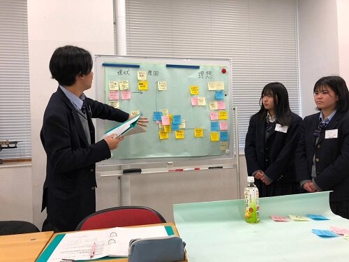 2月17日、実践講座の第五回が行われました。生徒たちは前回から今回の講座の間で、社会課題の探究に向けて外部への取材やインタビュー、調査を進めておりました。