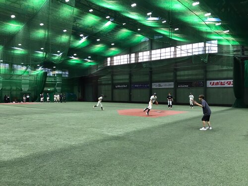 午後には神宮外苑の室内練習場で先輩方と練習をしました。夏季大会では優勝目指し、部員一同一丸となって感謝の気持ちを持って戦っていくことを再確認することができました。白球会の皆さんありがとうございました。