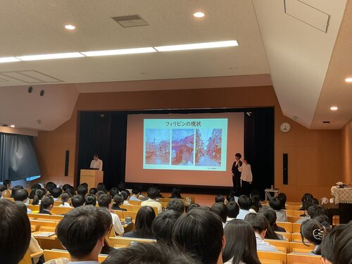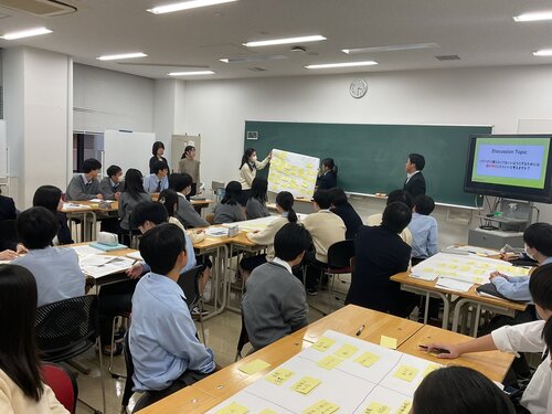 2時間目目は、ゼミ生の方をファシリテーターとして、グループワークを行いました。林ゼミの主要テーマでもある「フィリピンの貧困格差を埋めるためにどうすればよいのか」という課題に対し、各グループがそれぞれアイデアを出し合い、発表しました。国際的な貧困解決に向けたゼミ生の「本気の思い」に触れたことで、普段の学校生活を見つめなおし、自らの進路を考えるきっかけになったようです。
